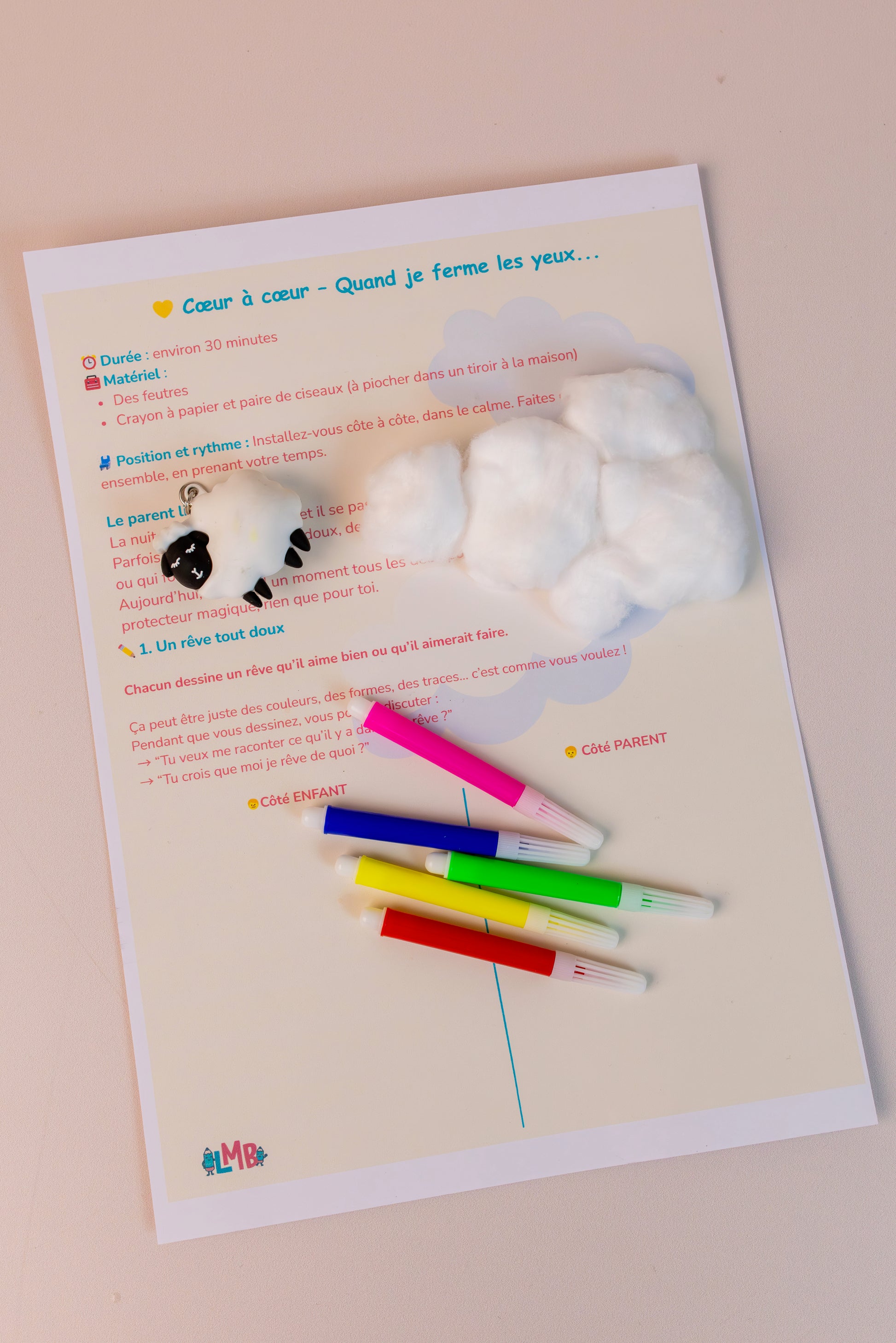 - Une activité cœur à cœur "Quand je ferme les yeux...", un moment de discussion et de partage d'émotions à deux.
